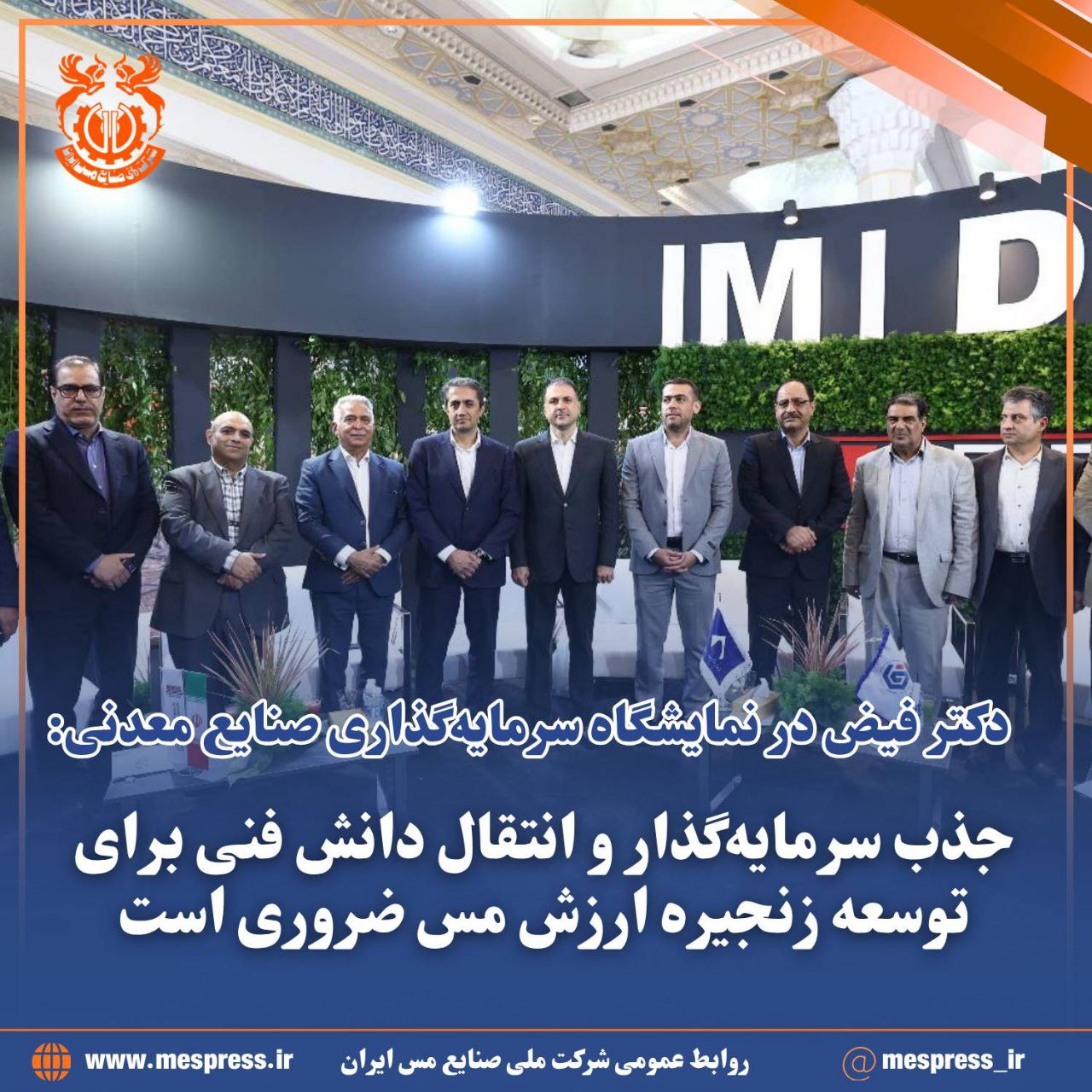 فرهنگ اقتصاد _ به نقل از مس پرس، دکتر سیدمصطفی فیض سه‌شنبه ۸ مهر در جمع سرمایه‌گذاران خارجی حاضر در این نمایشگاه، به ظرفیت‌های گسترده زنجیره ملی مس از بخش معدن تا صنایع معدنی و آمادگی بهره‌برداری از فرصت‌های سرمایه‌گذاری مشترک و نوآورانه در چارچوب سیاست‌های کلان کشور اشاره کرد.