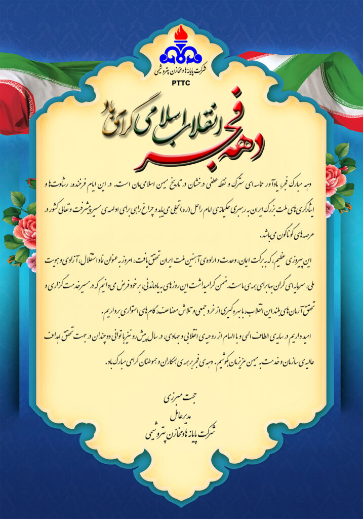 • پیام تبریک مدیرعامل شرکت پایانه ها و مخازن پتروشیمی به مناسبت فرا رسیدن دهه مبارک فجر