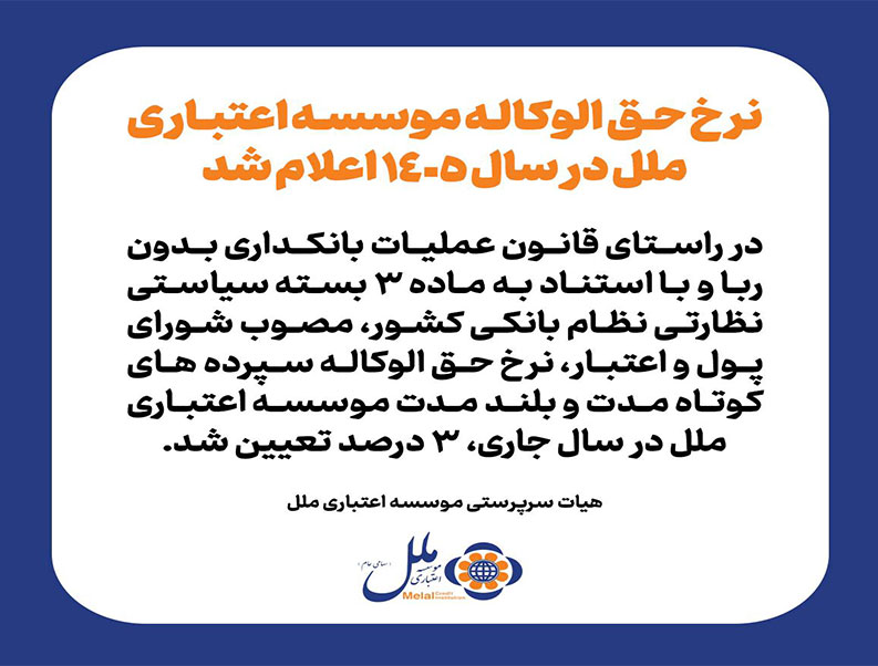 • نرخ حق الوکاله موسسه اعتباری ملل در سال ۱۴۰۵ اعلام شد