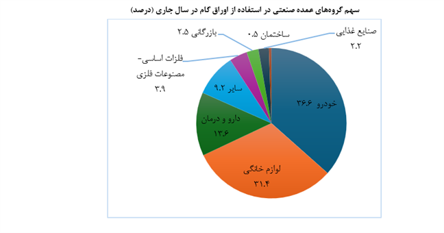 علاوه بر این، در سال جاری دامنه استفاده از اوراق گام به عنوان یکی از ابزارهای اصلی تأمین مالی زنجیره تولید در مقایسه با مدت مشابه سال قبل در میان بنگاه‌های اقتصادی گسترش یافته است که نشان دهنده نقش مؤثر این ابزار در کاهش وابستگی بنگاه‌ها به تسهیلات بانکی و هدایت اعتبار به بخش مولد اقتصاد است. بر این اساس سهم اوراق گام به عنوان اولین ابزار تامین مالی زنجیره تولید در تامین مالی سرمایه در گردش بنگاه‌های اقتصادی کشور از ابتدا تاکنون در صنایع متنوعی از جمله خودروسازی، لوازم خانگی، صنایع غذایی، دارو و درمان، بازرگانی، فلزات و مس از ۱۳۰ همت فراتر رفت.