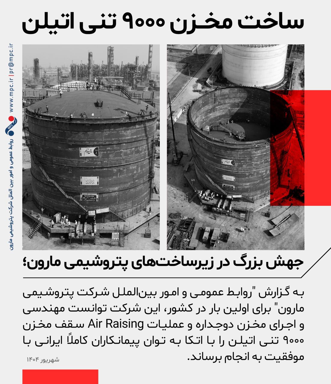 جهش بزرگ در زیرساخت های پتروشیمی مارون؛ ساخت مخزن ۹۰۰۰ تنی اتیلن